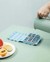 Praktische Eiswürfelform zum Verschließen und Befüllen mit Wasser, Säften und anderen Flüssigkeiten, sowie Obst und weiteren Toppings